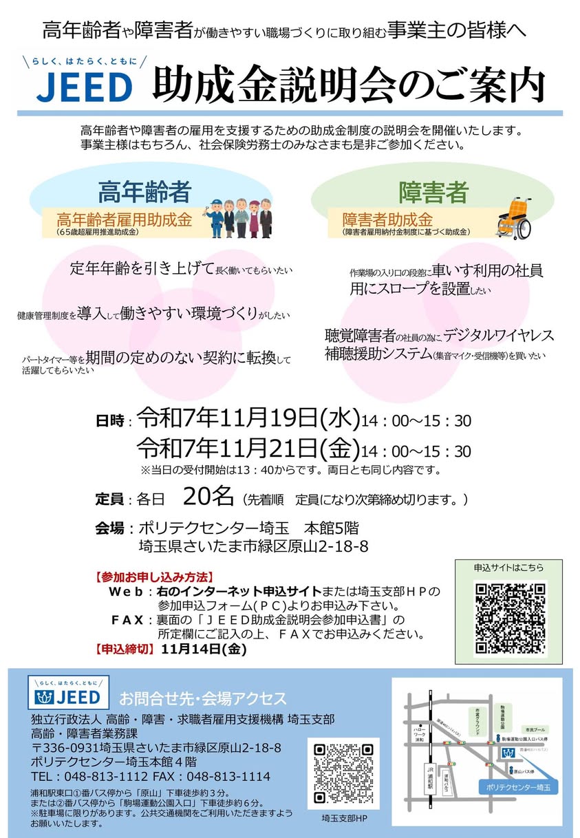 独立行政法人高齢・障害・求職者雇用支援機構より、「助成金説明会」のお知らせです。