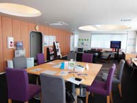 のソファーやミーティングができそうな木目の大きなテーブルなどが置かれ、