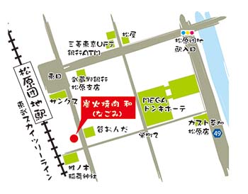 お店は、松原団地駅東口徒歩約2分の場所にあります。シンプルでスタイリッ